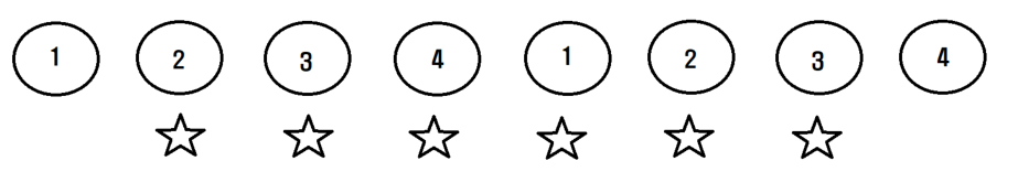최초 배급 대상 죄수번호(s)인 2 번부터 사탕의 총 개수(m)만큼 사탕이 일직선상으로 순차적으로 배급됨으로써 죄수 번호 2번부터 순차적으로 사탕을 배급했더니 최종적으로 죄수 번호 3번에게 마지막 사탕이 주어진 것을 확인할 수 있다. 이때 최초 배급 대상 죄수 번호 2와 사탕 총 개수 6을 덧셈(+)하고 1을 뺄셈(-)면 7(=2+6-1)이 나오는데 이는 맨 앞에 있는 죄수 번호 1부터 마지막 사탕을 배급받은 죄수번호 3까지의 죄수 수와 같다. 이때 1을 뺀 이유는 최초 배급 대상 죄수 번호 2가 사탕을 받은 것이 중복 가산되기 때문이다.