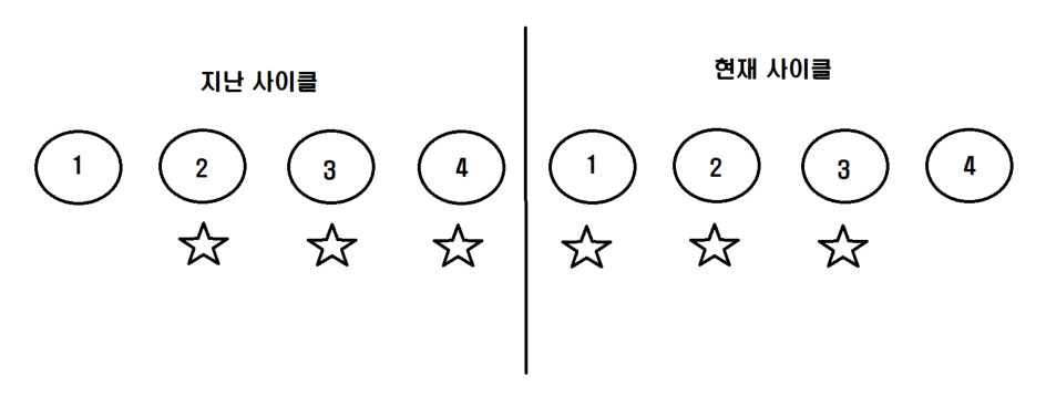 이 7이라는 숫자에 전체 죄수의 수 4를 나머지(%) 연산하면 3이 나오는데 이는 마지막으로 사탕을 배급받은 죄수 번호 3과 일치하는데 그 이유는 나머지(%) 연산을 통해 이미 지난 죄수 사탕 배급 사이클을 모두 제거 시켜주기 때문이다. 문제에서 요구하는 것은 현재 사이클에서 마지막으로 사탕을 받은 죄수 번호이다.