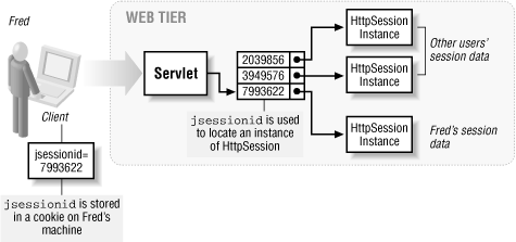 서버는 이 쿠키에 있는 session id를 통해 앞서 요청에서 생성했던 HttpSession을 찾고 이를 통해 사용자 정보를 처리하여 클라이언트에 응답해준다.