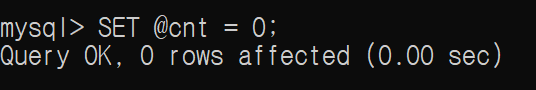 UPDATE 테이블명 SET 테이블명.칼럼명 = @cnt := @cnt + 1;