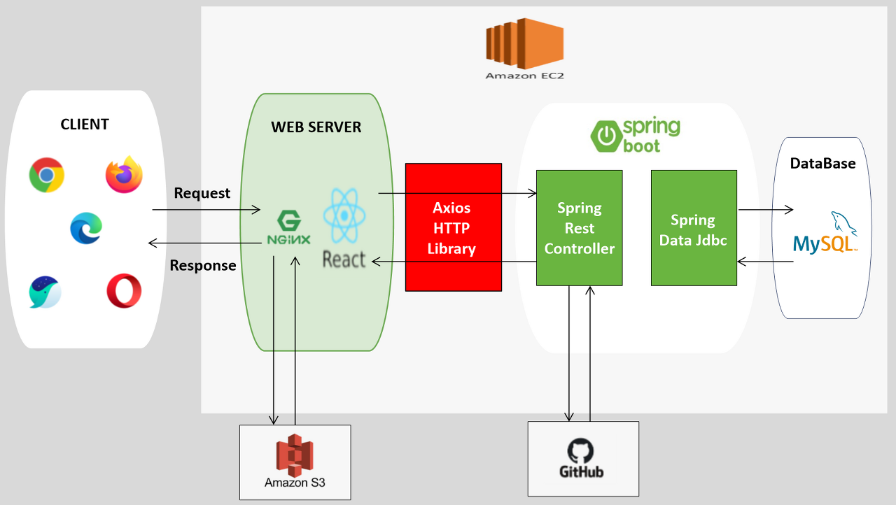 또한 그동안 들어보기만 했었던 OAuth, Nginx, S3 등을 프로젝트에 적용해보면서 정말 많은 것들을 배웠고 무엇보다 정말 '재미'있었다. Access Token을 이용하여 깃허브 리소스 서버의 API를 호출하면 사용자(Resource Owner)의 정보를 받아오고 웹 서버 Nginx의 설정을 통해 요청 경로에 따라 특정 애플리케이션 서버로 해당 요청을 넘기는 등 동작 하나 하나들이 모두 처음 직접 접해보는 것들이기에 신비로운 현상들이었다. 아울러, 웹 앱 개발 과정의 시작과 끝을 간소하게나마 경험해봄으로써 이제야 비로소 웹 개발을 공부하고 있다는 느낌을 받기 시작했다.