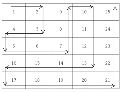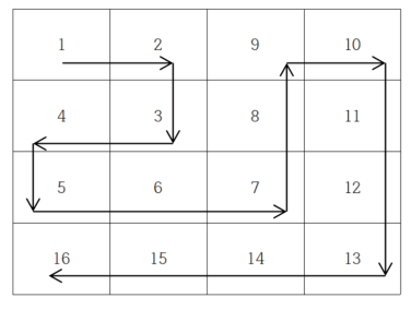 사실 이러한 배열 채우기 방식에 대한 정확한 명칭을 짓기 어려워 나름대로 뱀이 이동하는 모습과 같아 '뱀 채우기'로 명명해보았다. 다른 좋은 이름도 있겠지만 우선 이번 글에서는 '뱀 채우기'라는 이름을 사용하고자 한다.