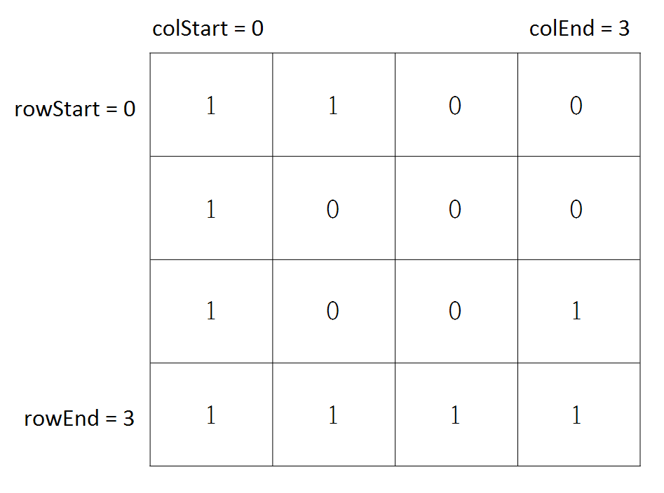 search(rowStart, (rowStart + rowEnd) / 2, (colStart + colEnd) / 2, colEnd);