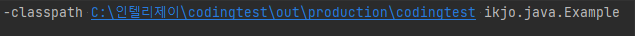 이때 클래스 파일의 루트 디렉토리(ikjo 패키지의 상위 디렉토리)를 클래스패스로 지정해줘야 하는데, 현재 ikjo 패키지의 상위 디렉토리는 "C:\인텔리제이\codingtest\out\production\codingtest"이므로, 이를 클래스 패스로 지정해주면 제대로 동작할 것이다.