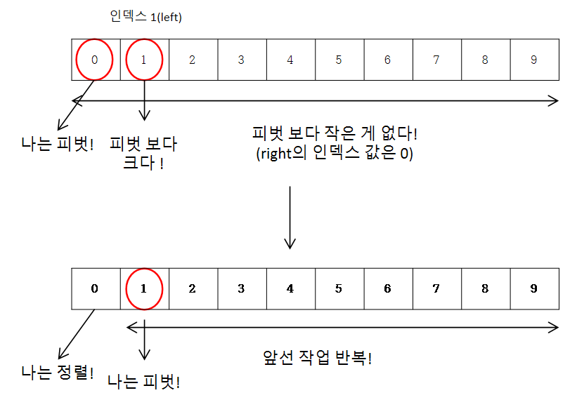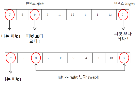 } else { // 피벗 보다 큰 거(left)랑 작은 거(right)랑 swap!