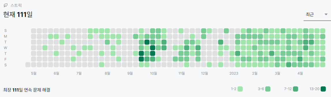 4월부터는 예전과 달리 알고리즘 학습에 많은 시간을 할애하고있지 않은데, 그래도 추후 코딩테스트를 위해서라도 문제 풀이 자체는 틈틈이 진행 중에 있다. 확실히 프로젝트에 몰입하려고하니 예전처럼 장시간 문제 풀이에 고민하는 시간이 아깝다(?)는 생각이 들 때도 있다. 💦