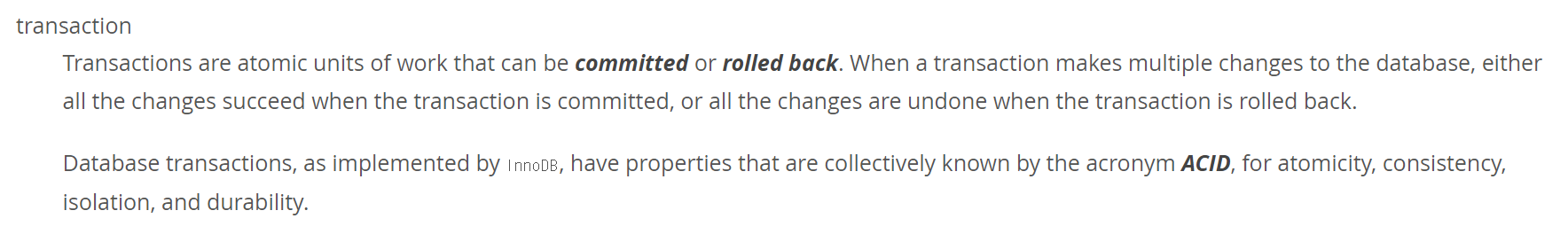 트랜잭션은 근본적으로 동시성을 제어하기 위한 것이 아니라 작업의 완전성을 보장하기 위한 것이다. 즉, 논리적인 작업들을 모두 완벽하게 처리하거나, 에러가 발생했을 경우 원 상태로 복구해서 작업의 일부만 적용되는 Partial update 가 발생하는 것을 방지하기 위한 것이다.