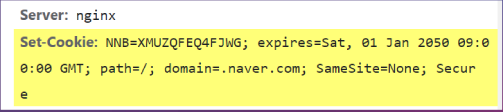 SameSite 의 None 속성은 SameSIte 속성 중 가장 개방적인 속성으로, Same Site 건 Cross Site 건 모든 문맥에서 쿠키가 전송 가능하게 된다. 이는 한 때 많은 브라우저들의 기본 속성값이었으나, 현재는 Lax 로 변경되는 추세이며, None 으로 설정 시 쿠키의 Secure 속성 설정을 강력하게 권고하고 있는 추세이다.