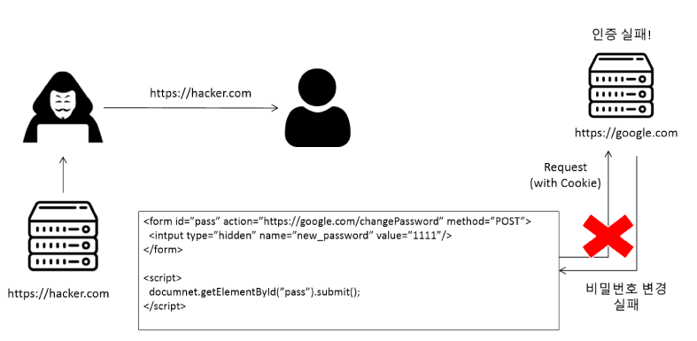 쿠키는 세션 관리, 사용자 트래킹 등 웹에서 다양한 용도로 사용되는 기술이다. 하지만, 이러한 쿠키는 사용자 PC 에 저장되며 웹 브라우저에서 쿠키의 출처(쿠키의 Domain 속성과 Path 속성으로 정의)와 동일한 서버에 요청 시 자동으로 전송되게 된다. 하지만 이러한 매커니즘은 CSRF 공격에 노출되기 쉽다.
