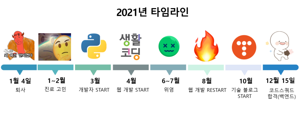 저는 공기업에서 신재생에너지 관련 업무를 했었고(2018. 1.~2021. 1.) 2021년 3월 9일 개발자가 되기로 했었습니다. 아직 부족한 점이 많지만, 이 글은 지난 2021년 저의 성장 과정을 기록한 글이기도 하며, 지금 이 순간에도 프로그래밍을 막 시작하신 분들께 조금이나마 도움을 드려보고자 작성한 글이기도 합니다. :)
